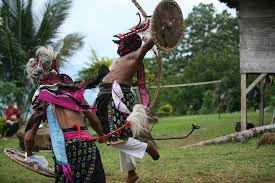 tarian caci yang bebas diartikan menguji (ketangkasan) satu lawan satu.